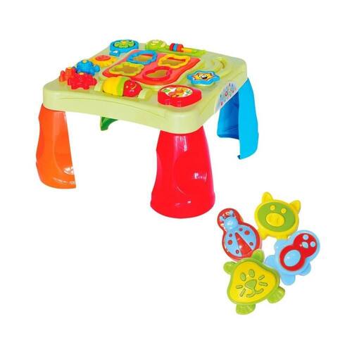 Essa mesa oferece atividades que favorecem o desenvolvimento visual, a percepção das cores, a coordenação motora e manual, além de estimular a criatividade e a percepção de movimento. ============================================================ Contém: 01 Mesinha Didática