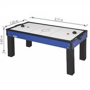 Mesa de Air Game Tradicional - Aero Hockey Klopf - Cód. 1045 - Mesa de Aero Hockey com estrutura em MDP com acabamento em primer azul, secagem UV; - Tampo de MDF revestido com laminado melamínico; - Pés desmontáveis com sapatas plásticas de polipropileno (PP). - Pés fixados nas lateriais, proporcionando melhor estabilidade. - Contador de Pontos; - Possui 1 moto ventilador que proporciona perfeita flutuação do disco. - Voltagem: 110 e 220 V. - Acompanha 01 Kit com 2 rebatedores e 2 discos.