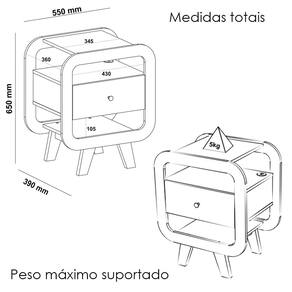 Peso máximo suportado: 5kg (Tampo)