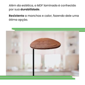 A mesinha de encosto de sofá possui um tampo em formato de folha, confeccionado em MDF, que adiciona um toque de elegância e originalidade ao ambiente. Seu design compacto e elegante é ideal para apoiar livros, bebidas ou itens decorativos, oferecendo funcionalidade sem comprometer o estilo. Perfeita para complementar salas de estar, seu formato único e acabamento em MDF garantem durabilidade e charme. Ambiente Principal: Sala de Estar Complexidade da Montagem: Baixa: pode ser montado por uma pessoa sozinha Cor: Preto/Madeira Cor do Produto: Preto/Madeira Escala de Brilho: Semi-Fosco Itens Inclusos: 1 Mesinha, manual de montagem e kit ferragem Linha ou Coleção: Folha Manual de Montagem e Instalação: https://product-hub-prd.madeiramadeira.com.br/956335/documents/1ee1ea17-8c96-43c4-8d6c-b6ed67c47cf42418864493817279656089712.pdf Material do Tampo: MDF Material Principal: Aço Necessita Montagem: Sim Peso: 3 kg Possui Espelho: Não Possui Possui Gavetas: Não Possui Portas: Não Possui Prateleiras: Não Recomendações de Uso, Manutenção e Limpeza: Limpeza com pano macio e levemente umedecido. Não utilizar solventes a base e de inflamáveis. Não utilizar produtos abrasivos. Sistema de Montagem: PARAFUSOS Suporta Até (kg): 5 kg Marca: PAONANDA DECOR