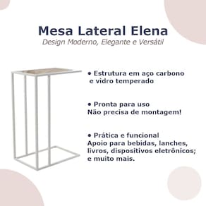 Mesa lateral Elena industrial com tampo de vidro, prática, elegante e funcional, ideal para salas de estar, quartos e espaços compactos. A Mesa Lateral é versátil, útil e com design moderno, com estrutura de aço e tampo de vidro, ela oferece firmeza e leveza visual ao ambiente. Seu formato de canto ou encaixe é perfeito para ser usada ao lado do sofá ou poltrona, acomodando objetos de apoio com conforto. Compacta e funcional, torna-se uma ótima aliada na decoração de salas de estar, quartos ou escritórios internos.
