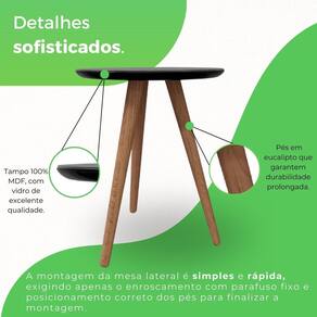 Itens Inclusos: 1 Mesa de canto lateral e 1 Kit com 3 pés palitos de Eucalipto.