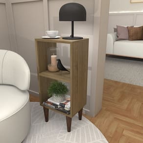 Mesa de Apoio Lateral/Estante com Prateleira Carvalho Mel - Bege