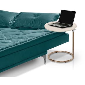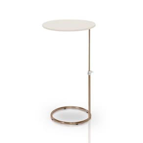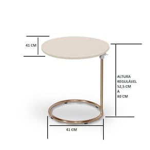 Mesa De Apoio Paty Regulável Base Aço Cobre estilo industrial tampo Off White Lorena Móveis