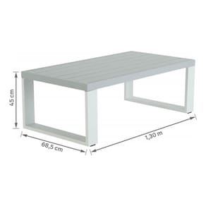 Exiba sofisticacao e funcionalidade com esta Mesa de Apoio Retangular Baixa, perfeitamente dimensionada em 45x68x130cm. Fabricada em aluminio de alta qualidade, a mesa possui um acabamento branco impecavel que adiciona um toque de elegancia a qualquer ambiente. Sua estrutura robusta garante durabilidade, enquanto seu design retangular oferece amplo espaco para acomodar suas necessidades, seja para apoiar livros, bebidas ou decoracoes.