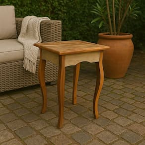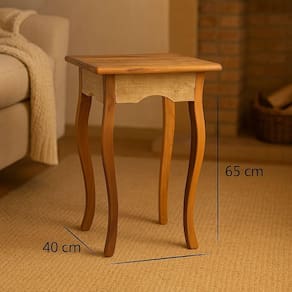 Transforme seu ambiente com charme e personalidade usando esta linda mesa de apoio rústica feita em madeira maciça. Com um design delicado e artesanal, ela combina traços clássicos com acabamento natural, destacando os veios da madeira e as curvas suaves dos pés.