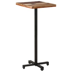 A mesa é feita de madeira maciça recuperada com acabamento em cores mistas, tornando-a estável e durável. Cada peça de mobiliário é única e ligeiramente diferente da outra. Móveis feitos de madeira recuperada têm as características de diferentes madeiras, como teca, madeira de manga e acácia. Sinais de desgaste e estrutura de grão visível dão a cada peça sua própria história e uma aparência única. A base de ferro com revestimento em pó preto fornece estabilidade e robustez. Esta mesa de jantar serve até mesmo como mesa para colocar sua bebida ou qualquer outra necessidade que você precise à mão.