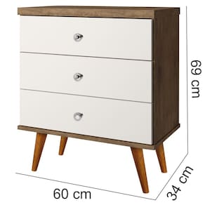 Estrutura: MDPAcabamento: Pintura U.V.Gavetas: Sim, 03 gavetas com corrediças metálicas, que suportam até 10 Kg distribuídosNicho: Não,Pés: Sim, 04 pés palito em madeiraDimensões do produto Montado