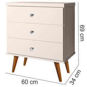 Estrutura: MDPAcabamento: Pintura U.V.Gavetas: Sim, 03 gavetas com corrediças metálicas, que suportam até 10 Kg distribuídosNicho: Não,Pés: Sim, 04 pés palito em madeiraDimensões do produto Montado