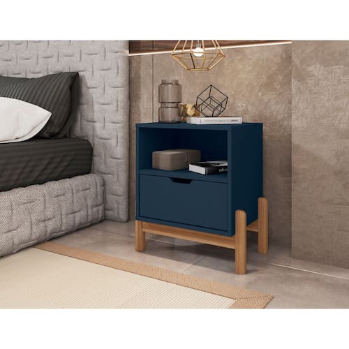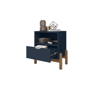 Mesa de Cabeceira Antares é ideal para deixar seu ambiente aconchegante e estiloso, com um design moderno e muito funcional, contém uma gaveta e um nicho com muito espaço para guardar seus pertences. Mesa de cabeceira com pés de madeira maciça, tornando-o ainda mais resistente. Acabamento de pintura UV. Frente de gaveta usinada.