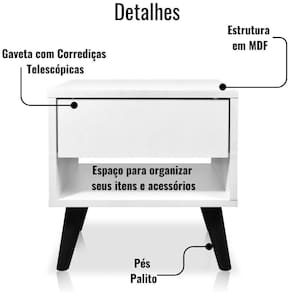 Mesa de Cabeceira 1 Gaveta 38 cm MDF Pés Palito MP
