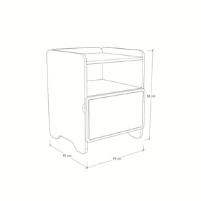 Medidas: 45cm comprimento x 45cm profundidadex 58cm altura Acabamento da Gaveta: BP Acabamento da Prateleira: BP Acabamento dos Pés: BP Altura dos Pés: 8 cm Ambiente Principal: Quarto Complexidade da Montagem: Baixa: pode ser montado por uma pessoa sozinha Cor: Verde Cor do Produto: Verde Cor Flex: Não Cor Interna: Verde Escala de Brilho: Fosco Escala de Brilho da Gaveta: Fosco Escala de Brilho da Prateleira: Fosco Gaveta com Chave: Não Itens Inclusos: 1 Mesa de Cabeceira, Parafusos para montagem + 1 Chave Philips + 1 Manual de montagem Linha ou Coleção: Coleção Móveis para Casa Manual de Montagem e Instalação: https://product-hub-prd.madeiramadeira.com.br/966026/documents/a43f0d40-6dd9-4e32-9fff-7c0e30ab5585251032957951730146586868.pdf Marca: Ferpa Design Material da Gaveta: MDF Material da Prateleira: MDF Material dos Pés: MDF Material Principal: MDF Montagem Flex: Não Necessita Montagem: Sim Origem do Produto: Nacional Pés Reguláveis: Não Peso: 20,9 kg Peso Máximo por Gaveta: 5 kg Peso Máximo por Prateleira: 10 kg Pet Friendly: Não Possui Espelho: Não Possui Possui Nichos: 01 Possui Pés: 04 Possui Portas: Não Possui Prateleiras: 01 Possui Vidro: Não Quantidade de Nichos: 01 Recomendações de Uso, Manutenção e Limpeza: Limpar somente com um pano levemente umedecido. Indicado para ambientes internos. Sapatas Niveladoras: Não Sistema de Montagem: Montagem com Parafusos, tambores de fixação e cavilhas Suporta Até (kg): 40 kg Tipo de Corrediça da Gaveta: Metálica Telescópica Tipo de Puxador da Gaveta: Embutido