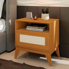 Renove o seu quarto com a Mesa de Cabeceira City! Com uma estrutura em MDP/MDF, esta mesa de cabeceira combina durabilidade e estilo em um único móvel. Possui uma gaveta com acabamento em tela Rathan sintético e moldura, equipada com corrediças telescópicas para facilitar o acesso aos seus pertences. Seus 4 pés em MDF garantem estabilidade e sofisticação ao conjunto. Adicione um toque de elegância ao seu ambiente com a Mesa de Cabeceira City, oferecendo conforto, funcionalidade e charme ao seu espaço de descanso.