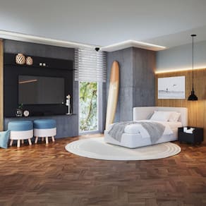Durabilidade e design inteligente: Produzido em MDP de 15mm com acabamento acetinado (cerca de 20% de brilho), este conjunto garante resistência e fácil higienização. O painel é ideal para TVs de até 65 polegadas, suportando até 30kg, e possui 2 prateleiras ajustáveis (suportam até 8kg em cada) ideais para decorar o seu quarto. O espaçamento para passagem de fios foi pensado para manter os cabos discretos e organizados, deixando o ambiente mais limpo visualmente.
