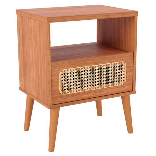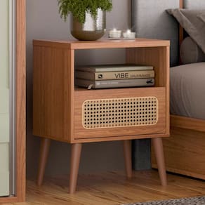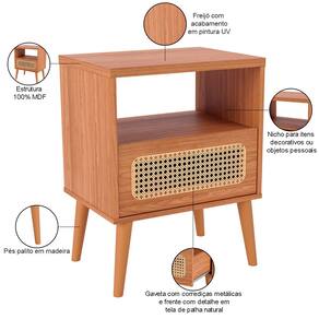 Com um design clássico e aconchegante, essa mesa de apoio é adornada com uma charmosa gaveta que exibe um detalhe de telinha em palha natural, trazendo um toque de natureza para o ambiente. Já os pés palito, com sua delicadeza, elevam a peça, proporcionando leveza e modernidade. Para completar, o design inteligente inclui um nicho aberto, ideal para livros, ou objetos pessoais, mantendo tudo à mão e organizado. Seja para enxergar sua rotina com mais organização ou simplesmente para embelezar seu espaço, a mesa de cabeceira Zack é um convite à versatilidade e ao conforto.