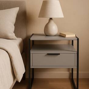 Procurando uma peça que une estilo e praticidade? A Mesa de Cabeceira Detroit é a escolha certa! Seu design industrial em cinza traz uma atmosfera urbana e moderna, perfeita para quem busca sair do comum.
