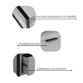 A combinação de madeira e metal cria um contraste visual incrível, e o acabamento em pintura laqueada de alta qualidade garante um toque aveludado e uma resistência superior a riscos e desgastes.
