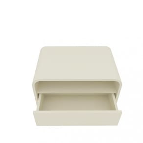 Características: Estrutura 100 em MDF Cantos curvos 1 Gaveta de design flutuante Corrediças telescópicas Bordas chanfradas e laqueadas Pés em madeira maciça