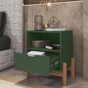 Material da mesa de cabeceira: MDP de 25mm e 15mm com pés de madeira maciça;