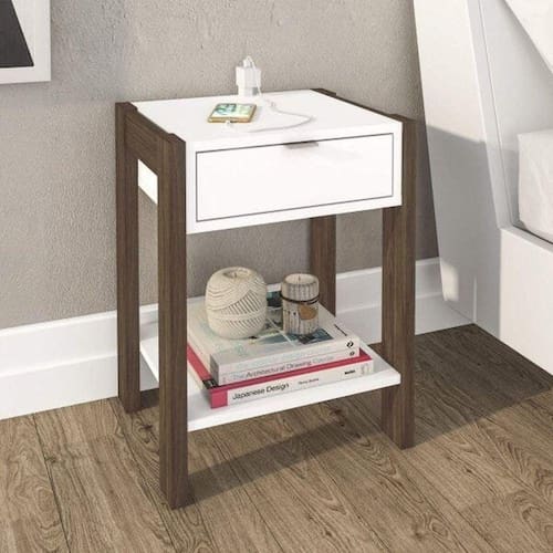 Mesa de cabeceira 1 Gaveta Tecno Mobili produzido em MDP 15mm e acabamento BP. Quando o assunto é conectividade esse é o mesa de cabeceira ideal para você. Contém uma tomada bivolt para carregar os mais diversos aparelhos tecnológicos, além de organizar seus objetos . Este produto faz parte da campanha #CriadoMudoNuncaMais. Atualizamos o nosso vocabulário e excluímos o termo mesa de cabeceira do nosso site. A partir de agora mesa de cabeceira é mesa de cabeceira aqui na MadeiraMadeira. Faça parte dessa mudança. Acabamento da Gaveta: BP Acabamento dos Pés: BP Altura dos Pés: 11,5 cm Complexidade da Montagem: Baixa: pode ser montado por uma pessoa sozinha Cor: Branco/Preto Onix Escala de Brilho: Semi-Fosco Escala de Brilho da Gaveta: Semi-Fosco Gaveta com Chave: Não Itens Inclusos: 1 Mesa de Cabeceira, manual de montagem e kit ferragem. Manual de Montagem e Instalação: https://product-hub-prd.madeiramadeira.com.br/523537/documents/ba166f83-d747-4afa-8122-a18b7c71977a4afca02ac95bc24bec69523537.pdf Material da Gaveta: MDP Material do Puxador da Gaveta: Alumínio Material dos Pés: MDP Material Principal: MDP Necessita Montagem: Sim Origem do Produto: Nacional Pés Reguláveis: Não Peso: 8,9 kg Peso Máximo por Gaveta: 3 kg Possui Espelho: Não Po Possui Pés: 04 Possui Portas: Não Possui Prateleiras: Não Possui Vidro: Não Recomendações de Uso, Manutenção e Limpeza: Utilizar somente pano úmido e sabão neutro. Sapatas Niveladoras: Sim Sistema de Montagem: Parafusos, cavilhas e minifix. Suporta Até (kg): 23 kg Tipo de Corrediça da Gaveta: Metálica Simples Tipo de Puxador da Gaveta: Externo Ean: 7908212500352