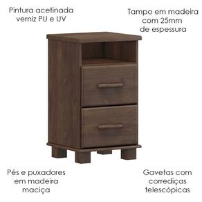 Modelo: Mesa De Cabeceira 2 Gav Madeira Maciça 44 cm 2249