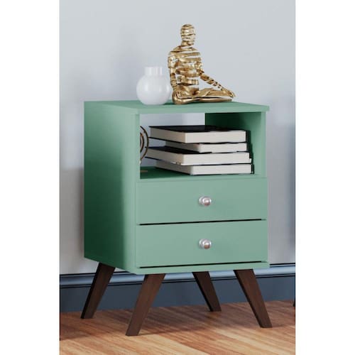 O criado mundo retrô 2 gaveta, RT 3103, da Movelbento é produzido em MDP 15mm caixa, 3 mm costas, puxador ABS, pé plástico retrô. Traz o charme e elegância da linha retrô para seu lar, além de ser muito útil para organização do seu quarto. Acabamento da Gaveta: Pintura UV Acabamento da Prateleira: Pintura UV Altura dos Pés: 17 Ambiente Principal: Quarto Complexidade da Montagem: Baixa: pode ser montado por uma pessoa sozinha Cor: Oliva Cor do Produto: Oliva Cor Interna: Oliva Escala de Brilho: Fosco Escala de Brilho da Prateleira: Fosco Gaveta com Chave: Não Itens Inclusos: 1 Mesa de Cabeceira, Kit Ferragens e Manual de Montagem Manual de Montagem e Instalação: https://cdn2.madeiramadeira.com.br/atributo/movelbento/928339-rt-3103.pdf Material da Gaveta: MDP Material da Prateleira: MDP Material dos Pés: ABS Material Principal: MDP Necessita Montagem: Sim Origem do Produto: Nacional Peso: 12 Peso Máximo por Gaveta: 3 Peso Máximo por Prateleira: 5 Pet Friendly: Não Possui Espelho: Não Possui Possui Nichos: 01 Possui Pés: 04 Possui Portas: Não Possui Prateleiras: 01 Recomendações de Uso, Manutenção e Limpeza: Antes de limpar recomenda-se que seja retirada toda a poeira com um espanador ou flanela seca para evitar riscos na superfície, após utilize um pano umido em água, macio e limpo. Sapatas Niveladoras: Não Sistema de Montagem: Parafusos, cavilhas e minifix Suporta Até (kg): 15 Tipo de Corrediça da Gaveta: Metálica Simples Tipo de Puxador da Gaveta: Externo