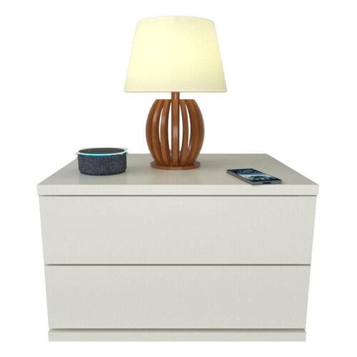 Mesa de Cabeceira 2 Gavetas 40 cm MDF Branco