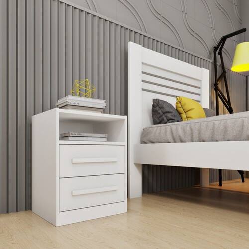 Mesa de Cabeceira 2 Gavetas - Barcelona-Neve - Tcil Móveis
