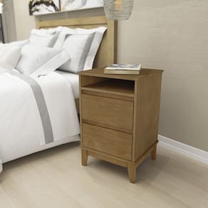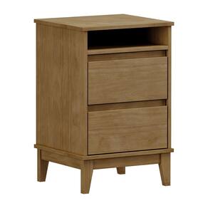 Mesa de Cabeceira 2 Gavetas com Nicho Linha Prata Madeira Maciça e MDF 2800FN Freijó Finestra - Marrom