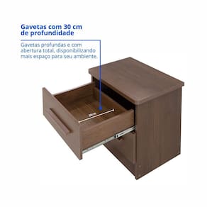 A mesa de cabeceira Zeus é moderno e pensado para garantir sofisticação ao ambiente. Produzido com tampo, fundo e frente de gavetas em MDF, possui 02 gavetas com corrediças telescópica e acabamento resistente com pintura UV. Ideal para ornar com a decoração do seu quarto. Possui quinas arredondadas. Atenção:A coloração das imagens do produto pode ter diferentes tonalidades dependendo do seu monitor.Ao receber o produto verifique as seguintes informações:Confira a quantidade de caixas e volumes;Consulte se o nome do comprador consta em todas as etiquetas;Verifique se as caixas não apresentam sinais de danos ou violação;Sempre confira seu produto no ato da entrega.NÃO nos responsabilizamos pela montagem do produto. Acabamento da Gaveta: Pintura UV Ambiente Principal: Quarto codigo_ean: 7900288216953 Complexidade da Montagem: Média: pode ser montado por mais de uma pessoa e/ou necessite de maior conhecimento para montagem Cor: Castanho Cor do Produto: Castanho Cor Flex: Não Cor Interna: Castanho Escala de Brilho: Semi-Fosco Escala de Brilho da Gaveta: Semi-Fosco Gaveta com Chave: Não Informações Complementares: O peso suportado, conta com os itens dentro da gaveta e sobre o móvel Itens Inclusos: 1 Mesa de Cabeceira, Kit Ferragem e Manual de Montagem Linha ou Coleção: Zeus Manual de Montagem e Instalação: https://product-hub-prd.madeiramadeira.com.br/329482062/documents/e7d40fe3-24b9-4cdf-8adb-55ff58b246583145142541117555376122262.pdf Marca: D Doro Material da Gaveta: MDF/MDP Material do Puxador da Gaveta: Madeira Maciça Material Principal: MDF/MDP Necessita Montagem: Sim Origem do Produto: Nacional Peso: 14 kg Peso Máximo por Gaveta: 7 kg Pet Friendly: Não Possui Espelho: Não Possui Possui Nichos: Não Possui Pés: Não Possui Portas: Não Possui Prateleiras: Não Possui Vidro: Não Recomendações de Uso, Manutenção e Limpeza: Pano levemente umedecido e pano seco. Não utilizar produtos de limpeza e abrasivos Sapatas Niveladoras: Não Sistema de Montagem: parafusos e cavilha Suporta Até (kg): 30 kg Tipo de Corrediça da Gaveta: Metálica Telescópica Tipo de Puxador da Gaveta: Externo