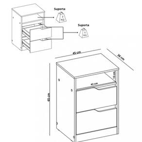 A Mesa de Cabeceira Sole é a combinação perfeita de estilo e funcionalidade. Com duas gavetas equipadas com puxadores cava e corrediças telescópicas, ela oferece um espaço de armazenamento organizado e de fácil acesso. O nicho aberto permite acomodar objetos de forma funcional e acessível, ideal para itens que você precisa ter à mão rapidamente. Este móvel não só renova o ambiente com seu design versátil e moderno, mas também otimiza o espaço ao redor da cama, proporcionando um toque de elegância e funcionalidade ao seu quarto.