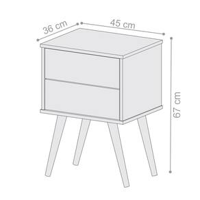 Conta com design retrô, possui 2 gavetas e pés palito, deixandoo ambiente mais organizado e bonito.