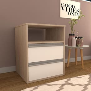 Mesa de Cabeceira 2 Gavetas MC25 Nova Mobile Noce e Branco
