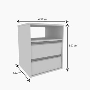 A mesa de cabeceira MC25 é produzida em MDF 15mm, acabamento pintura UV. Possui sapatas deslizadoras, puxadores em alumínio, 1 nicho que suporta 2kgs e 2 gavetas com corrediças metálicas e que suportam até 5kg cada. Produto suporta até 15kgs. Conteúdo da embalagem: móvel, ferragens e manual de montagem. A fixação das peças e/ou acessórios é feita por parafusos, cavilhas e minifix. Para uma limpeza mais efetiva, utilizar apenas uma flanela seca. Não utilizar produtos abrasivos. Garantia de 03 meses contra defeitos de fabricação. Medidas do produto (AxLxP): 59,7x48x44,70cm. Peso do produto: 18,28kgs.