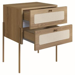Mesa de Cabeceira 27933, Linha Oslo Artesano. Traz como característica um traço artesanal, suave e acolhedor. Possui estrutura em MDP de 15mm, acabamento em pintura BP na cor Hanover (Fosco), e Pés de tubo metálico em aço e pintura epóxi na cor dourada. Composto por 02 gavetas com corrediças metálicas, puxadores de poliestireno na cor Dourado, aplique de tela sintética (PVC com poliéster), fixada na parte externa das gavetas, as extremidades dos pés possuem ponteiras plásticas para evitar atrito do móvel com o piso, com design escandinavo minimalista, é a opção ideal para um ambiente com toque sofisticado e ao mesmo tempo aconchegante. Mais produtos da Linha Oslo, você encontra em nosso site, podendo fazer a composição completa para sua casa, são diversos itens com design prático e funcional para tornar a vida mais facil e a casa mais alegre. Este móvel chegará em sua casa separado em 02 volumes.