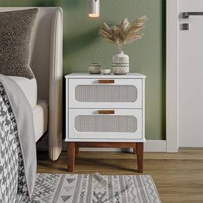 Tipo: Mesa de Cabeceira Modelo: Santorini Cor: Branco Tela Indiana Sintética