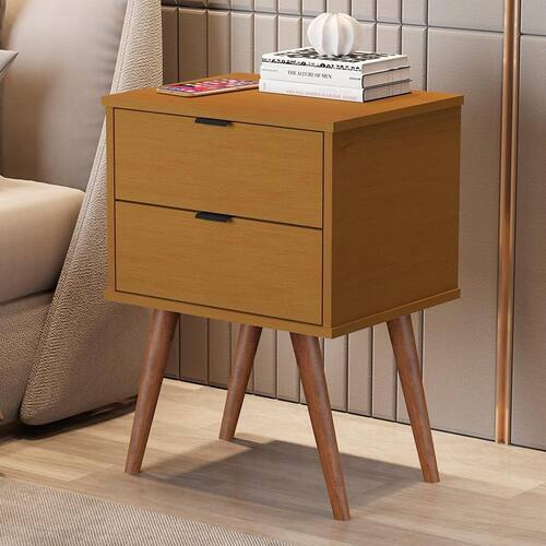 Está Linda Mesa de Cabeceira em Formato Quadrada é Estruturada em MDP, Acompanhada com 2 Gavetas, Corrediças Telescópicas, Puxadores em Estilo "Cava Croos" e 4 Pés em Madeira Estilo Palito.