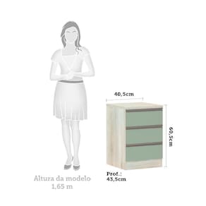 Mesa De Cabeceira 3 Gavetas 40cm Estrutura Legno Crema Prime Plus Luciane Móveis Verde Jade