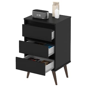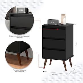 Mesa de Cabeceira 3 Gavetas com Pés Palito Woon - Preto