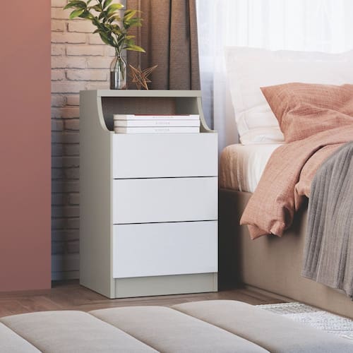 Mesa de Cabeceira 3 Gavetas Elegance Blanc - Marrom