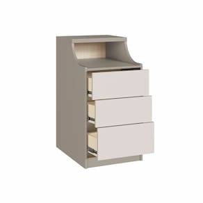 O módulo Mesa de Cabeceira da linha Elegance é o complemento ideal para o seu guarda-roupa modulado. Com três gavetas de abertura por sistema click e corrediças telescópicas de extração total, oferece um ótimo aproveitamento interno e abertura suave. Acompanha ainda uma prática tomada para maior funcionalidade (furação e instalação não inclusas). Funcionalidade, conforto e estilo em cada detalhe.
