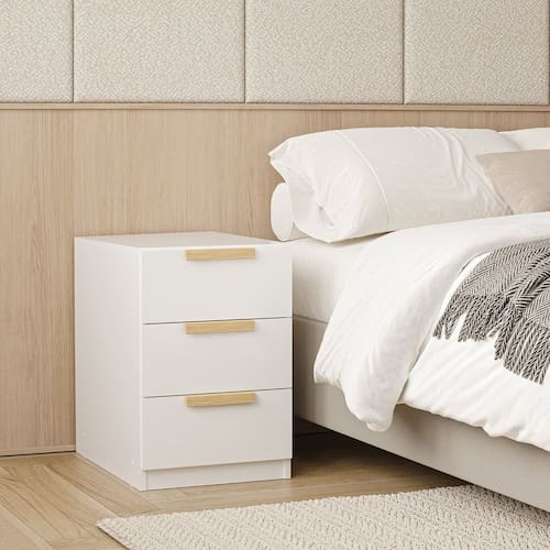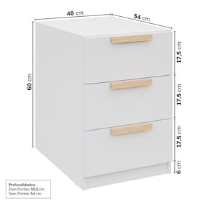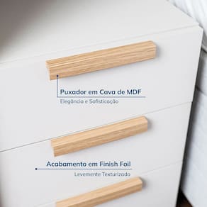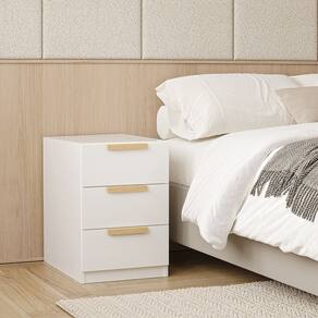 A Mesa de Cabeceira 3 Gavetas Jade CabeCasa foi desenvolvida para trazer a experiência de ter seu guarda roupas planejado de uma forma descomplicada, flexível e adaptável ao seu espaço, estilo e investimento. As gavetas possuem corrediça telescópica e possuem puxadores usinados com acabamento amadeirado em finish foil adicionando um toque de classe e trazendo calor e elegância ao ambiente. Tenha durabilidade, flexibilidade e estilo em um único móvel. Acabamento da Gaveta: Finish Foil Acabamento dos Pés: Finish Foil Altura dos Pés: 6 cm Ambiente Principal: Quarto Complexidade da Montagem: Alta: deve ser montado por um montador especializado Cor: Branco Cor do Produto: Branco Cor Interna: Branco Escala de Brilho: Fosco Escala de Brilho da Gaveta: Fosco Gaveta com Chave: Não Itens Inclusos: 1 Mesa de Cabeceira , Manual de Montagem, Kit Ferragem Linha ou Coleção: Jade Manual de Montagem e Instalação: https://product-hub-prd.madeiramadeira.com.br/917453/documents/ce5b8afc-cfe8-45a9-bb61-9932d9a3b0772072800491717189142208427.pdf Material da Gaveta: MDP Material do Puxador da Gaveta: MDF Material dos Pés: MDP Material Principal: MDP Necessita Montagem: Sim Origem do Produto: Nacional Pés Reguláveis: Não Peso: 21,33 kg Peso Máximo por Gaveta: 5 kg Pet Friendly: Não Possui Espelho: Não Possui Possui Nichos: Não Possui Pés: Rodapé Possui Portas: Não Possui Prateleiras: Não Possui Vidro: Não Recomendações de Uso, Manutenção e Limpeza: Para limpeza utilize pano macio, seco ou ligeiramente umedecido com água. Não utilize sapólios, polidores e ou produtos que contenham carga abrasiva, para evitar danos ao produto. Evitar que o móvel fique exposto a luz solar direta, ou em ambientes de umidade e calor excessivo. Não colocar carga excessiva de peso nas gavetas e prateleiras, para evitar acidentes ou danos ao produto. O móvel deverá ficar nivelado, desta forma, as gavetas e as portas terão o bom funcionamento, evite arrastá-los, isso pode danificar o móvel. Sapatas Niveladoras: Não Sistema de Montagem: Cavilhas, parafusos e cola Suporta Até (kg): 15 kg Tipo de Corrediça da Gaveta: Metálica Telescópica Tipo de Puxador da Gaveta: Externo