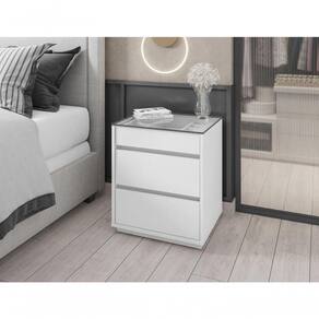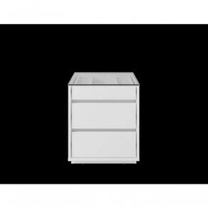O Criado Belize é ideal para o seu quarto! Ele possui 3 gavetas sendo que a superior possui um organizador interno para joias, relógios, etc, feito em MDF. As gavetas possuem corrediças telescópicas. Tampo feito de vidro, base e laterais feitos em MDP de 25mm, e possui 3 travessas transversais em MDP de 15mm que garante maior estabilidade e resistência à estrutura.