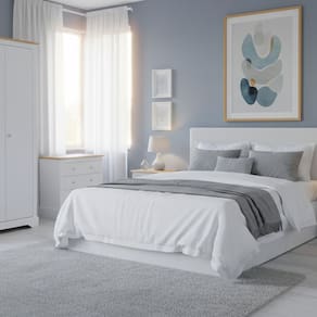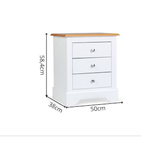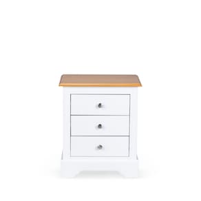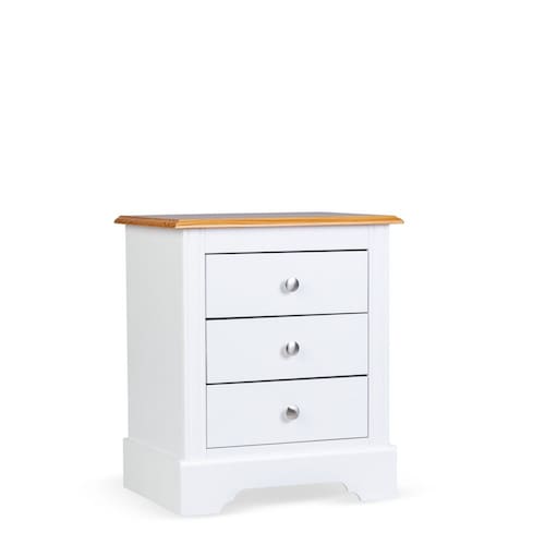 A Mesa de Cabeceira Louise com 3 Gavetas une elegância e praticidade em um design clássico com acabamento branco, que traz leveza e sofisticação ao ambiente. As gavetas amplas com puxadores metálicos são perfeitas para organizar objetos pessoais, enquanto o tampo em madeira maciça de pinus exibe sutis variações e desenhos naturais que realçam a beleza da peça.