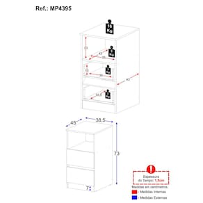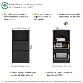 - Praticidade no dia a dia: 2 gavetas espaçosas com corrediças telescópicas, que deslizam suavemente e permitem maior aproveitamento interno.