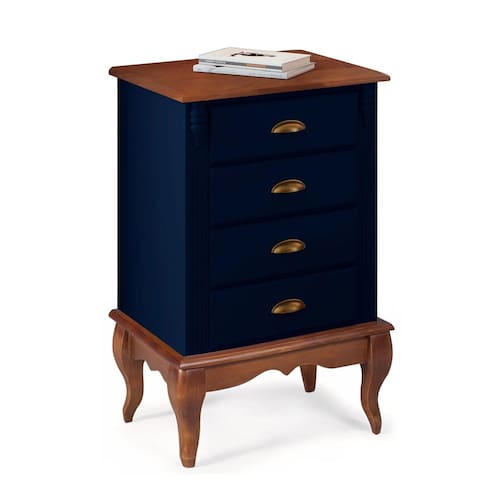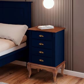 Mesa de Cabeceira 4 Gavetas Pés Luiz XV Hannover 60817 - Azul Petróleo/Imbuia Glazer