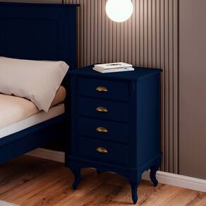 Mesa de Cabeceira 4 Gavetas Pés Luiz XV Hannover 60817 - Azul Petróleo