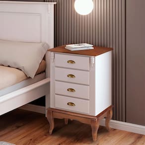 Mesa de Cabeceira 4 Gavetas Pés Luiz Xv Hannover 60817 - Branco/Imbuia Glazer