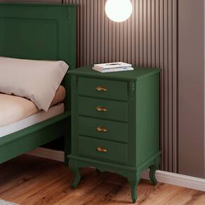 Mesa de Cabeceira 4 Gavetas Pés Luiz XV Hannover 60817 - Verde Musgo