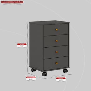 Criado com 4 gavetas e rodízio que facilita na locomoção. Muito espaço para organizar o quarto além de embelezar o ambiente. Para garantir a qualidade do produto dentro da embalagem, as caixas são revestidas por um plástico termo encolhível e todas as peças são separadas por isomanta, tudo para preservar e evitar o atrito entre as peças dentro da embalagem. Você contará também com um manual com o passo a passo para auxiliar no momento da sua montagem.